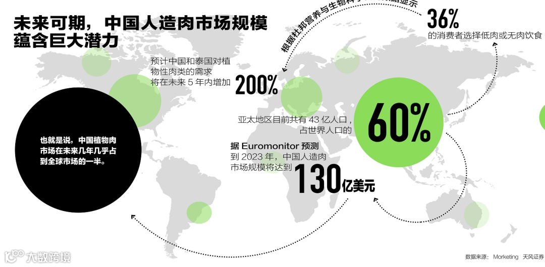 以植物肉为例,据一份国泰证券的数据显示,2020年全球植物基人造肉市场规模约139亿美元,且预计会以每年约15%的复合增长率增长,到2025年或将达279亿美元 。
