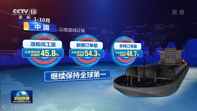 党的二十大报告指出,高质量发展是全面建设社会主义现代化国家的首要任务。11月24日,《新闻联播》报道今年前十个月我国造船业三大指标稳居世界第一,公司LNG新船订单承接量全球占比达到20%以上,创历史最好成绩,公司党委书记、董事长陈建良表示,公司今年已承接32艘LNG船,2026年之前全部处于满负荷生产状态。