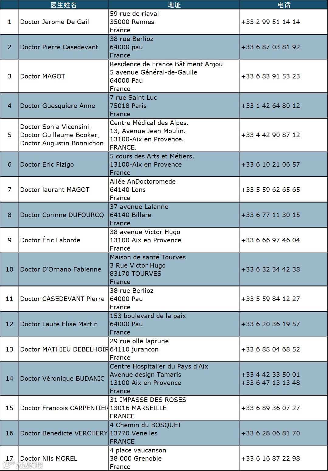 - 目前联系到的医生电话和地址(后面会继续更新):