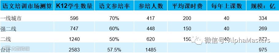 按照我们草根调研了解行业目前经验值是语文约占数学收入的40%,教育培训龙头好未来预计今年100亿收入,数学60亿,则依此推导语文培训龙头年收入起码可以达到25亿上下的规模,20%净利率对应5亿利润。