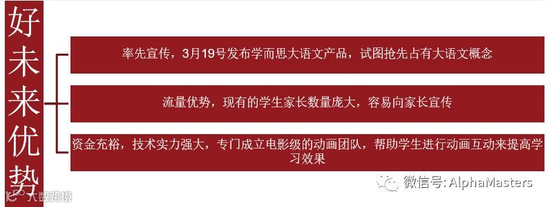 窦昕团队作为大语文的首创者和普及者,已经领先竞争对手一步,且通过和立思辰上市公司的资本合作,有望迅速打通品牌、扩张短板,从一步领先到步步领先。