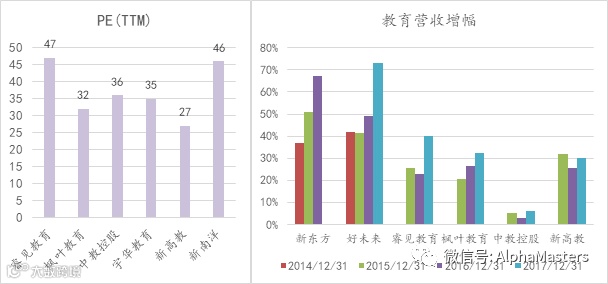 资本市场对教育培训行业的追捧不仅仅体现在好未来新东方的股价涨幅和高估值,对教育的估值溢价还扩散到港股上市但成长性远弱于好未来的教育股。