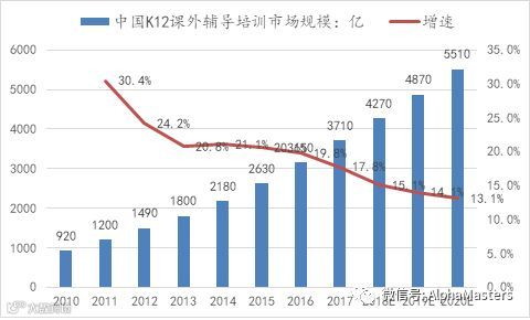 根据中国产业信息网的数据,中国K12课外辅导市场规模在2016年达到3150亿,而且仍处于较快的增长中;而大机构得益于扩张和集中度的提升,增长速度持续快于行业增速。