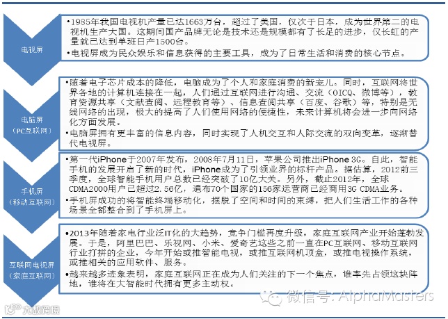 2)起点是PC屏/手机屏/电视屏的内容互联,核心是电视屏