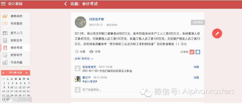 A、会计家园,是专门为会计和财会税务人员提供的社区,自称有两千万用户,为从业人员提供社交、培训、视频教学、专家问答咨询以及复习备考等内容;