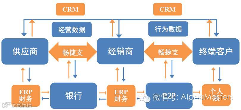 畅捷通以云平台和支付为中心,将供应商、经销商、终端客户及银行等相互连接,形成商业闭环。客户通过平台可以直接交易与贷款,畅捷支付提供支付通道,畅捷支付亦可提供资金管理、理财渠道。