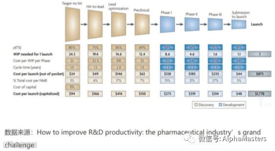从图中可以看出,制药公司如果要每年推出一款新药,那么每年需要至少有25条pipeline。而新药的研发具有高风险、高投入、长周期、低成功率的特质,制药公司通过兼并收购、授权许可、联合开发(CRO)等方式,来缓解自身新药开发管线的枯竭。