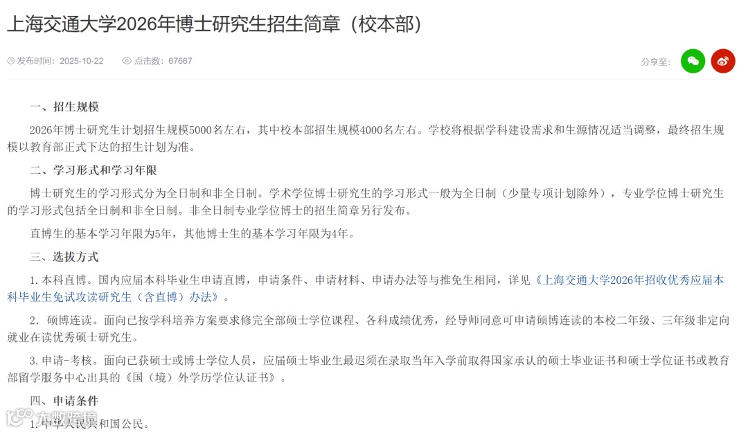 最近一则新闻划破了我的屏幕。起因是上海交大拟在2026年博士研究生招生中将规模扩大至5000名左右。一年招5000名博士是什么概念,要知道上海交大2025年本科招生总数仅为4995人,远在太平洋彼岸的美国近几年平均每年约5万名博士生取得博士学位,可以说光是上海交大计划一年招的博士生就是美国的十分之一。消息一出,迎来许多质疑声和无奈声。要知道在逐渐内卷的今天,学历贬值已成为当今硕博口中长谈的话题。不知大家有没有想过这样一个问题,在2022年房价开始下跌前,国家就已经开始频繁迅速地出台各种政策,与省市地方政府联合打出多套组合拳希望房价软着陆、止跌回暖。然而,近几年网上早已喊出了就业难、难就业。高学历硕博已经在严峻的就业环境下出现了学历与就业率倒挂的现象,但是我们很少看见有多少组合拳打在解决就业的问题上。这不禁让人思考为什么。接着博士扩招的话题,我想从宏观发展的角度浅谈自己的些许看法。所谓扩招,并非只是为了延缓就业问题,其实对于高学历人才的扩招,恰好迎合当前国家发展的战略规划。我们需要借助扩招打造一套辅助国家在新时代迭代更新科技架构的高质量人才队伍。