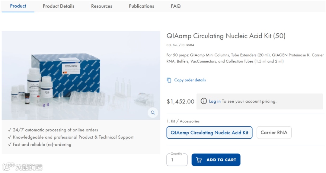 这款试剂盒同样是QIAamp的产品,它的优势在于处理大体积(8 mL)样品的cfDNA提取纯化。并且该款试剂盒同样可以适配于自动化核酸提取仪。
