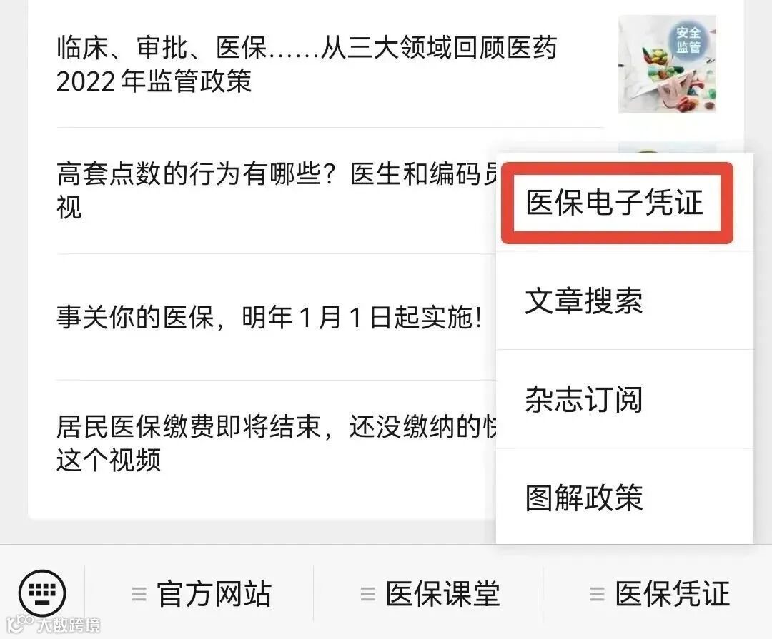 关注“中国医疗保险”微信公众号。点击菜单栏“医保凭证”-“医保电子凭证”进入页面进行激活操作。