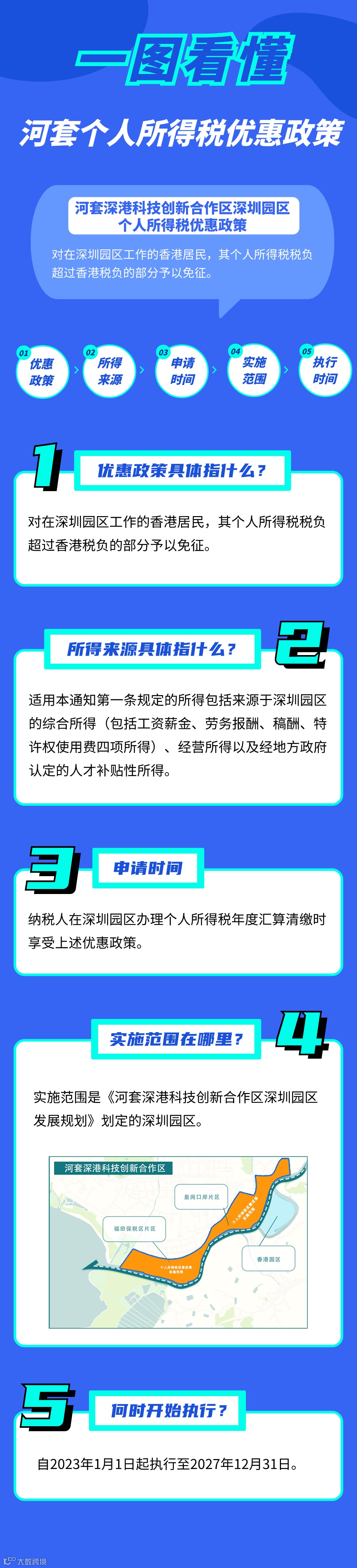 近日,国家财政部、税务总局印发《关于河套深港科技创新合作区深圳园区企业所得税优惠政策的通知》(财税〔2024〕2号)、《关于河套深港科技创新合作区深圳园区个人所得税优惠政策的通知》(财税〔2024〕5号),明确对设在河套深港科技创新合作区(以下简称“河套合作区”)深圳园区特定封闭区域符合条件的鼓励类产业企业,减按15%的税率征收企业所得税。对在深圳园区工作的香港居民,个人所得税税负超过香港税负的部分免征。