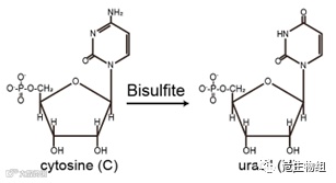 基于重亚硫酸盐(Bisulfite based)测序的技术巧妙在,重亚硫酸盐可以对未发生甲基化的胞嘧啶发生脱氨基反应进而转化为尿嘧啶(下图所示),已经发生甲基化的胞嘧啶则无法脱氨基生成尿嘧啶。经过反应后,理论上剩余的胞嘧啶大部分来源于发生甲基化的胞嘧啶。通过高通量测序后,则能识别出甲基化。但是重亚硫酸盐测序有两种缺点:1.胞嘧啶5号为发生羟基化修饰的胞嘧啶同样可以在重亚硫酸盐环境下保留,尽管甲基化修饰是较常见的,但是现有的文献发现5-甲基修饰和5-羟基修饰具有不同的生物学意义。2.重亚硫酸盐处理后的样本中大部分DNA容易被降解,测序后序列的复杂度显著降低。尽管重亚硫酸盐测序存在一些弊端,但是这种方法的简便性和成本以及相关生物信息分析方法的完善驱动了重亚硫酸盐测序在过去的几十年中是甲基化测序行业的金标准技术。