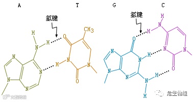 根据分子生物学或生物化学教科书中给予的定义Tm值的定义,是两段互补的碱基序列解链50%时的温度。英文中给予的定义也是类似的:The Temperature of Melting (Tm) is defined as the temperature at which 50% of double stranded DNA is changed to single-standard DNA. Tm is basically depends on GC conent. 英文名称解释中特别强调了DNA的Tm值主要依赖于其序列中的GC含量。这主要是因为在碱基互补配对中,A与T配对时形成2个氢键。C与G配对时形成3个氢键。