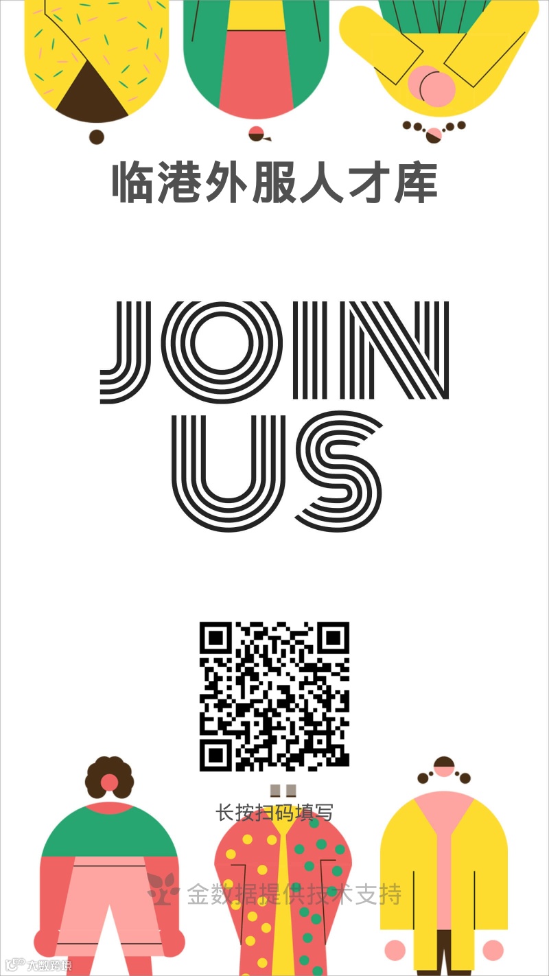 扫描下方二维码填写应聘信息,即可加入临港外服人才库,一键直达招聘岗位,免费享受精准推荐服务。临港外服将根据人才库信息为您匹配合适职位,信息越完整匹配度越高哦!