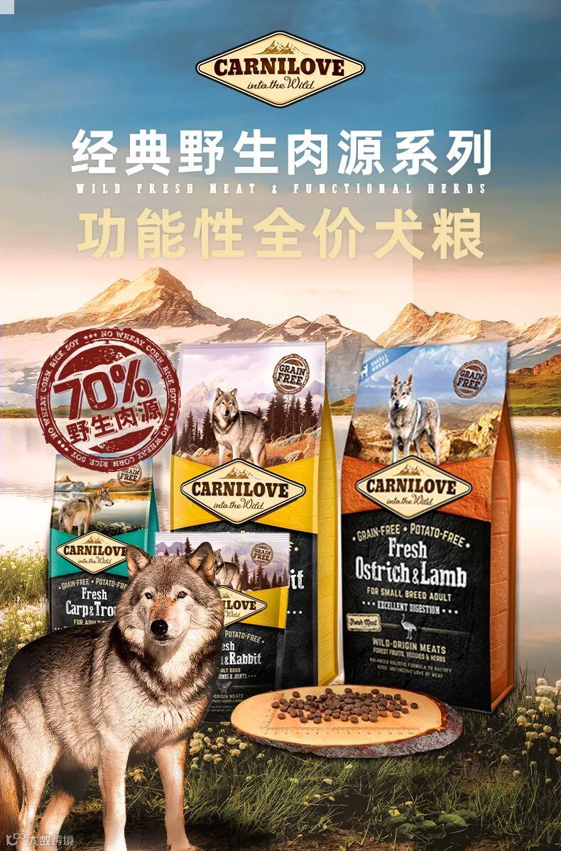 宠物犬系列产品包含狗粮、狗罐头、狗餐包。野生鲜肉配比同样高达85%,均衡营养功能性草本配方,天然无添加,不含谷物薯类,不含任何化学成分、添加剂、防腐剂。