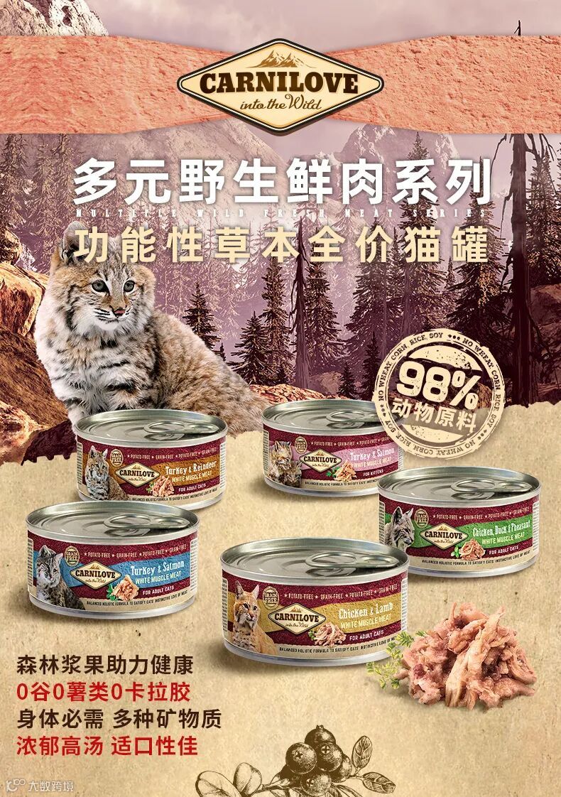 宠物猫系列产品包含猫粮、猫罐头、猫餐包。