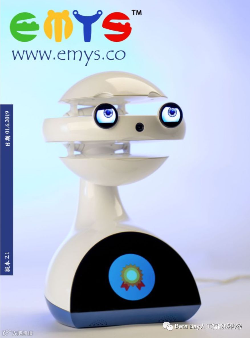EMYS是一款能通过与孩子们有规律且有趣的互动来教授外语的机器人。EMYS能吸引孩子们的多种感官,并识别他们所熟知的和最爱的卡通人物、玩具以及周围环境的物品。他能移动,会说话,还能识别人脸,表达感情,逐渐和孩子们建立起亲密的关系。在学习语言的路上,EMYS能真正成为孩子内心世界的一部分,充满着奇妙的童趣、释放孩子们的天性和无边的想象力。EMYS全套教学内容开发及产品设计均来自欧洲团队。