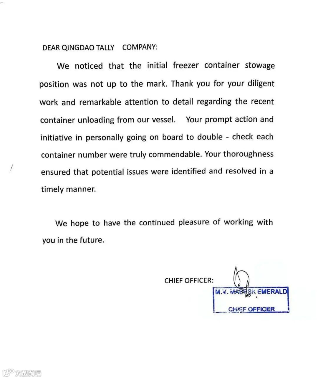 临近完船时,根据船方需求,理货人员用监控设备拍摄船舶前后吃水情况发送给客户,获得点赞。