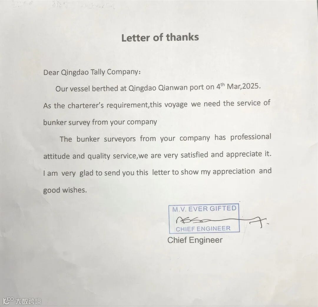在量油过程中,理货人员克服环境复杂、视线差等困难,按油舱实际情况详细记录数据,确保计量数据准确。协助船方与码头沟通,动态调整计量方案,保障装卸与量油互不影响、同步推进,力求最短时间内完成任务。
