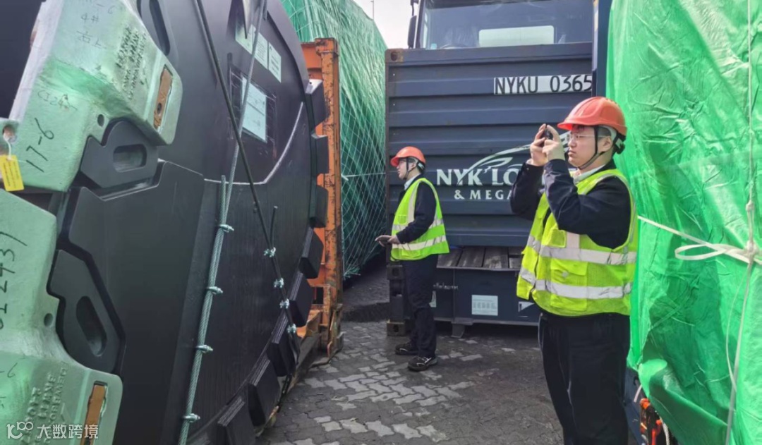“地中海象牙海岸”轮出口大件设备监装业务,设备货值高昂,吊装工艺要求严格,理货人员全程拍照记录货物状态,确保货物顺利装船。