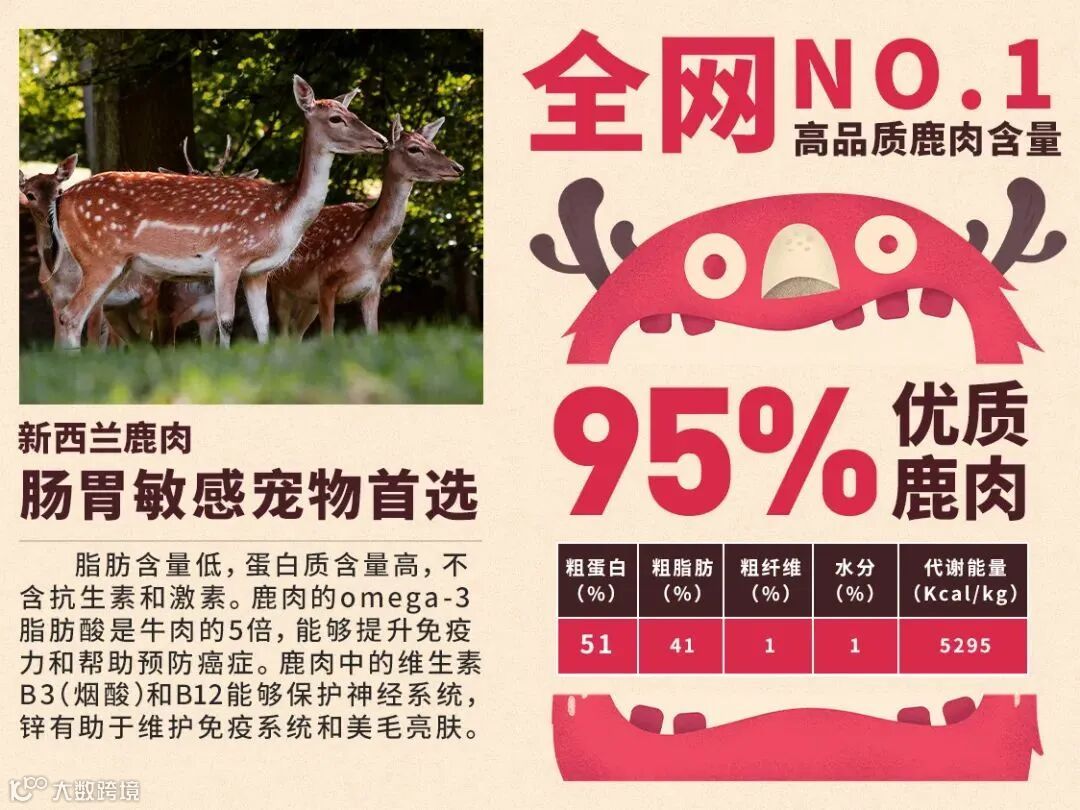 鹿肉蛋白低致敏,是肠胃敏感、对蛋白质过敏宠物的理想选择。富含多种营养元素:维生素B、锌、磷和铁等矿物质,有助于提升免疫力和预防癌症。