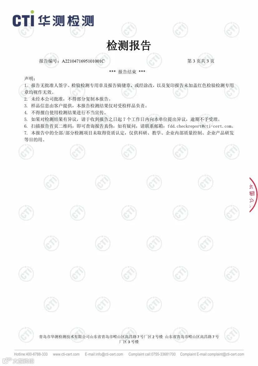 并主动请多家客户将该两批次样品直接寄送至第三方权威检测机构华测进行检测,检测费用由天奇贸易全权承担。
