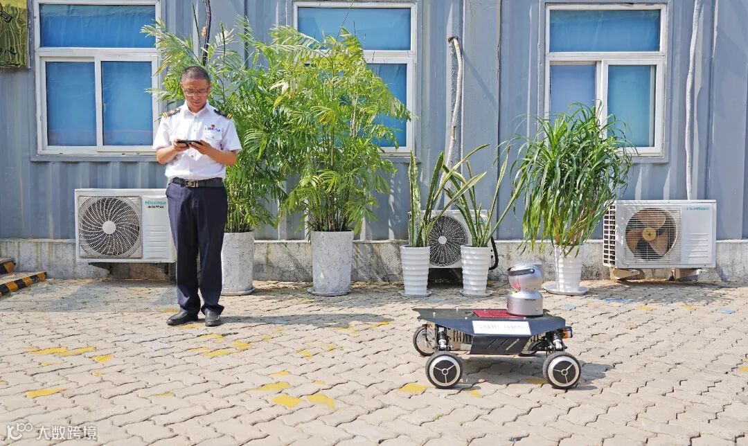 “超视距远程控制理货车”能够载重100Kg,采用越野式轮胎行走,可搭配多种智能设备,应用场景更加灵活、智能,适配于分拨库装拆箱箱理货、集装箱应急处置等理作业。其自身采用锂电池提供动力,可移动20公里或监控24小时,续航能力更加持久、环保。