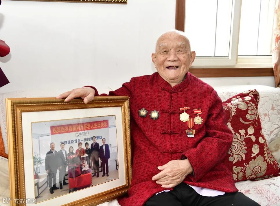 天赐期颐,人间百岁。回顾百年记忆,既是老同志的个人奋斗史,更是生动的港口发展史。他们用生命的长度筑起百年港口的历史坐标,见证中国共产党领导下港口建设发展的辉煌历程和业绩。2021年11月11日,山东省港口集团党委为山东港口百岁老人刘万祥庆生,这场精心策划的“回家”之旅,成为刘老近年最难忘的生日礼物。值此重阳佳节来临之际,为大力弘扬中华民族尊老敬老爱老传统美德,传承红色基因,赓续红色血脉,我们对百岁老人刘万祥进行回访,聆听他的人生足迹,感受他的爱党爱国爱港情怀,见证他25年军旅生涯、85年党龄的本色人生。