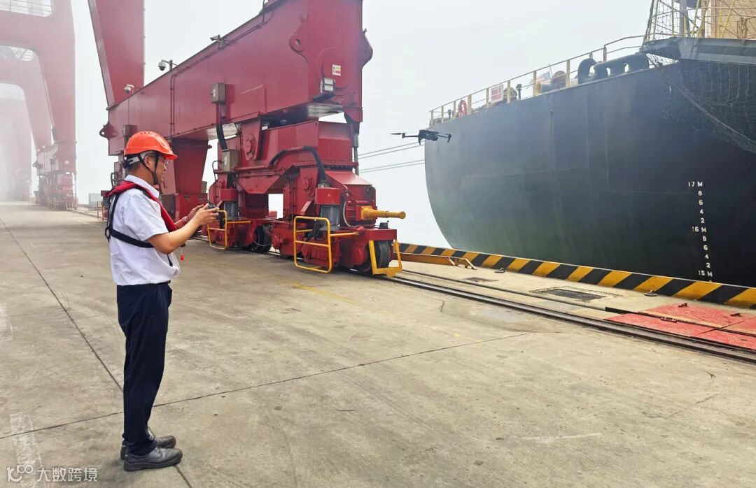业务开展前,为顺利进行水尺计重业务,外理公司提前对接客户需求,摸排船舶计划,建立“一船一群、多方协同、事事沟通”工作模式,全力以赴服务客户特殊需求。业务开展时,检验人员全程使用无人机实时观测水尺数据信息,实现数据全程可追溯,准确的计量结果和高效的测量效率得到客户的好评。