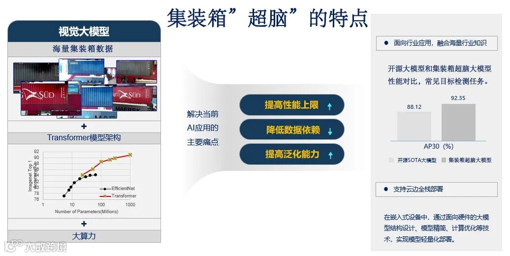 据了解,“超脑”由青岛港外理公司、科技集团青岛公司和第三方软件公司经过多轮技术论证后联合研发的全新一代基于大模型的人工智能产品,可以通过更少的训练样本实现更高的识别准确率,能够轻松应对各类新型箱型代码和复杂多变的集装箱理货作业场景,为山东港口青岛港智能理货发展注入新动力。