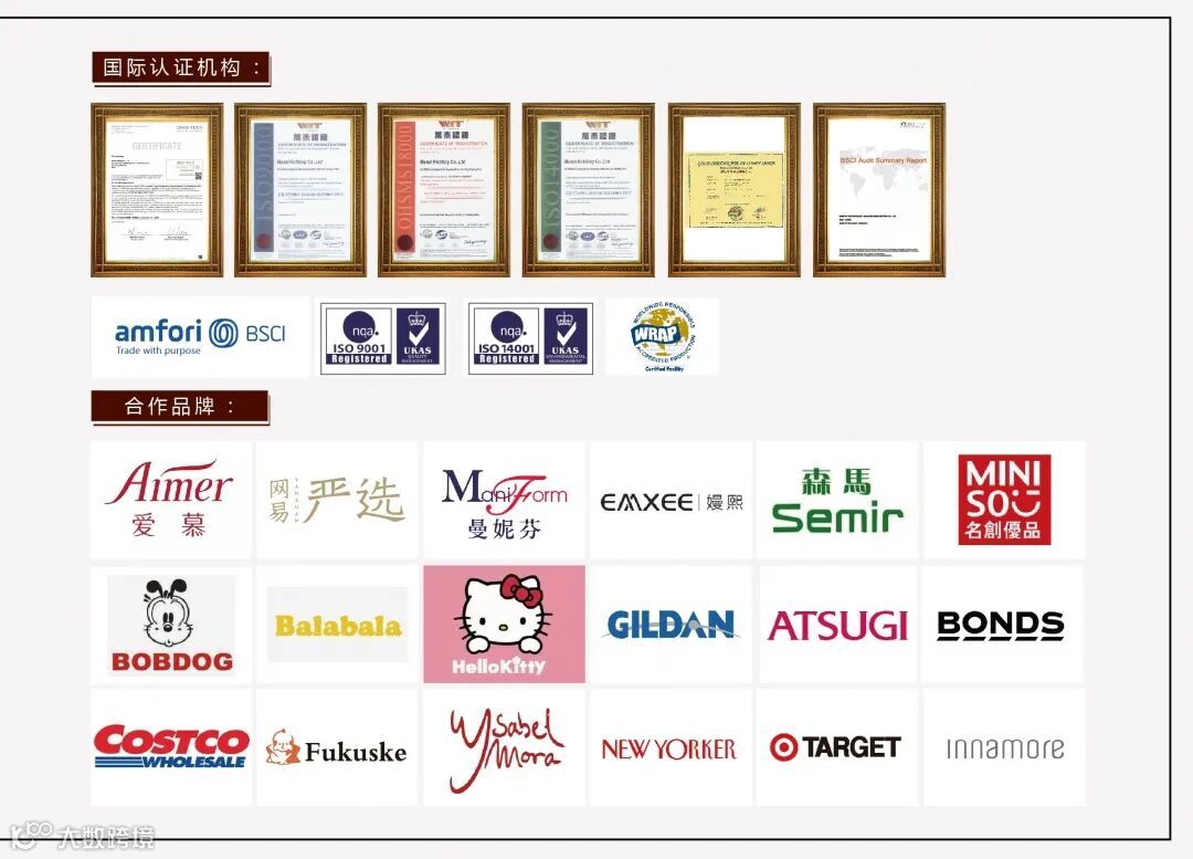 公司从2008年开始,所有的产品都通过了“OEKO-TEX Standard 100” 认证,成为国内最早通过欧盟生态环保纺织品认证的制袜企业之一。经过多年发展,公司陆续获得“浙江省出口名牌”、“浙江科技中小型企业”、“两化融合(国家级)贯标企业”、“金华市高新技术研发中心”、“义乌市工业五十强”、“义乌市A类企业”等多项荣誉。凭借着高端的产品品质,持续不断的创新,以及先进的管理体制,曼姿正不遗余力地致力于成为全球高品质和优质服务的贴身服饰供应商。