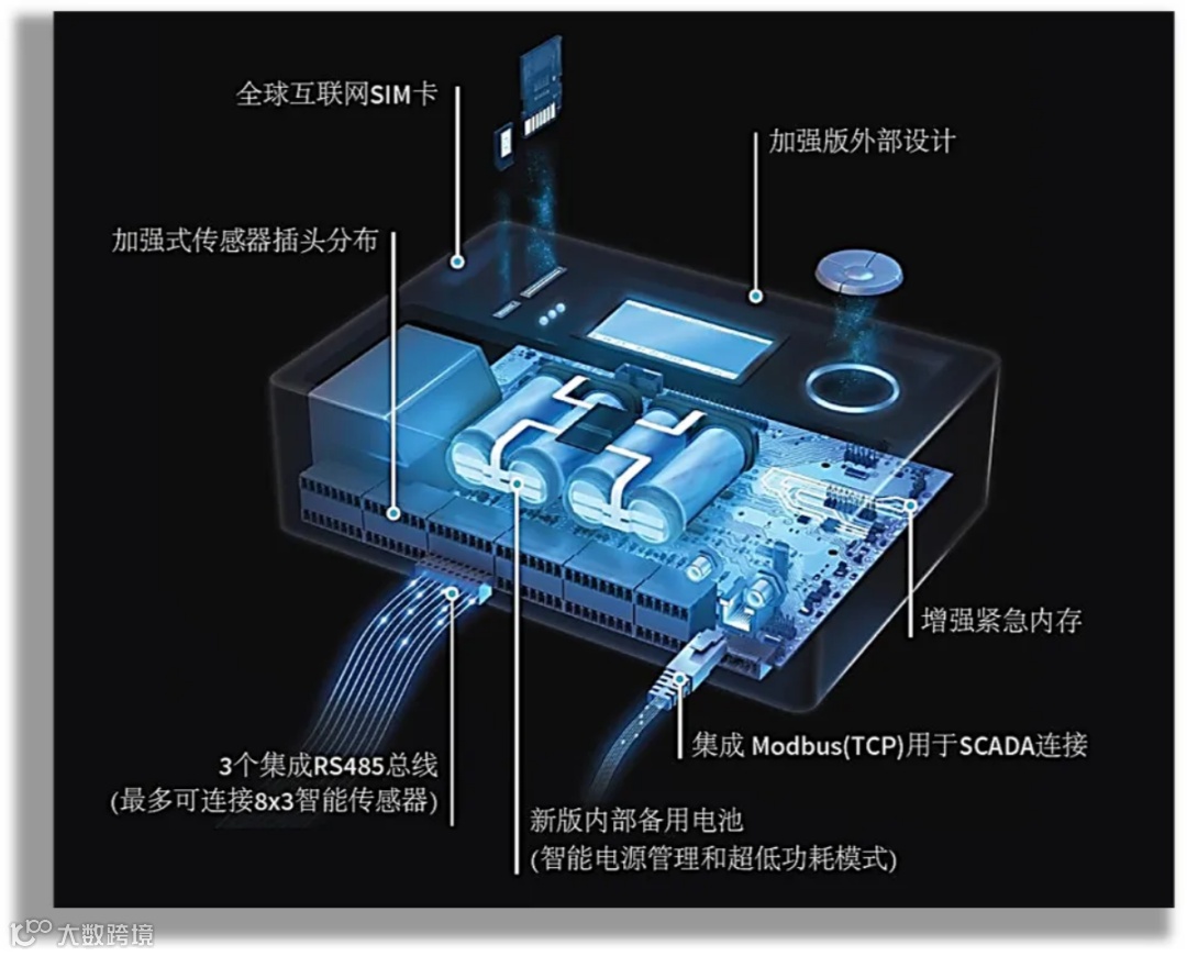 记录仪配用三条RS-485总线用于连接常用的数字与智能传感器。它还配有新的备用电池组,能耗超低的供电模式以及集成的Modbus RTU RS485与 Modbus TCP端口。