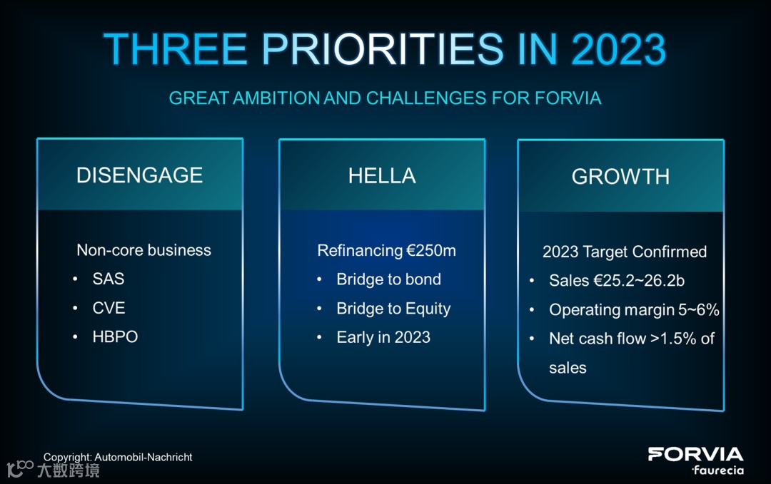 在纷繁复杂的国际形势和前景不测的汽车行情的影响下,佛吉亚在稳住主营业务的同时,集中精力来办以下三件大事:
