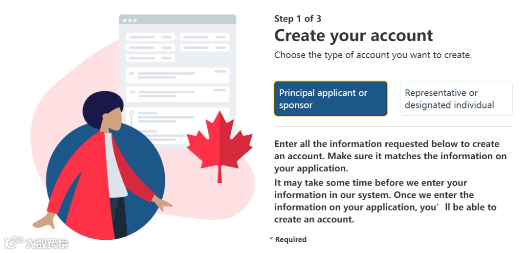 在这里我们选择用主申请人和担保人的身份注册,选择之后,我们需要提供以下信息: