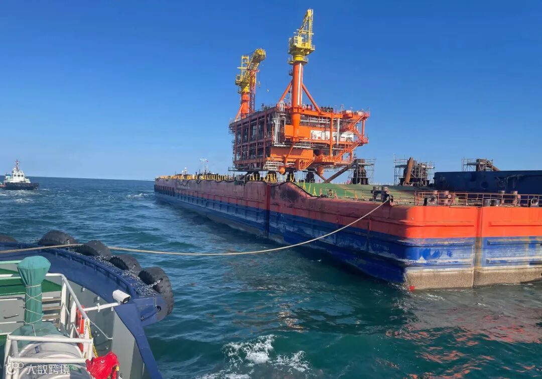 不远处,轮驳公司“青港拖2”轮和“亚洲十八号”轮正在协助工程驳船“海洋石油221”轮靠泊石油平台进行模块机组安装作业。作业期间,两艘拖轮凭借精湛的技术、紧密的配合,克服了作业现场水域水深较深、涌浪较大、作业精度高等困难和挑战,优质、高效地完成此次作业任务,展现了“海上野战军”精神。