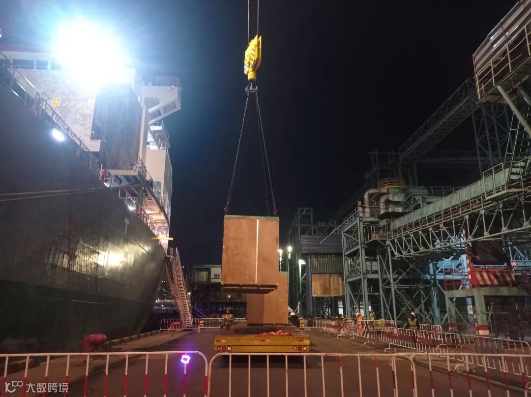 天色渐暗,“赫伯特”轮正在进行紧张的吊装作业。6件变压器,单件重达183吨,这是一个了不得的挑战。为了保障生产作业高效顺畅,大港公司根据船舶靠泊计划,提前规划场地,采用“双船机”抬吊的作业方式进行作业,单件效率较之前增加10%。199个配件按照货物件重进行分层铺货,操作部工艺员全程盯靠,各单位协同配合,现场生产热情一浪高过一浪,充分展现了职工们的攻坚精神。