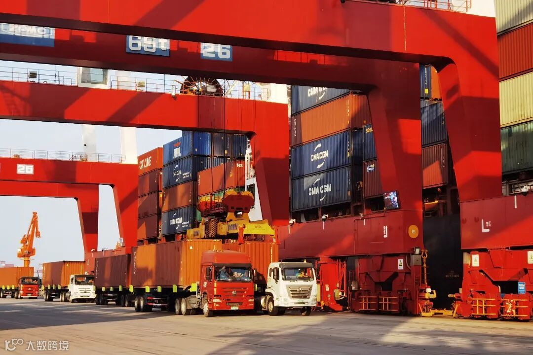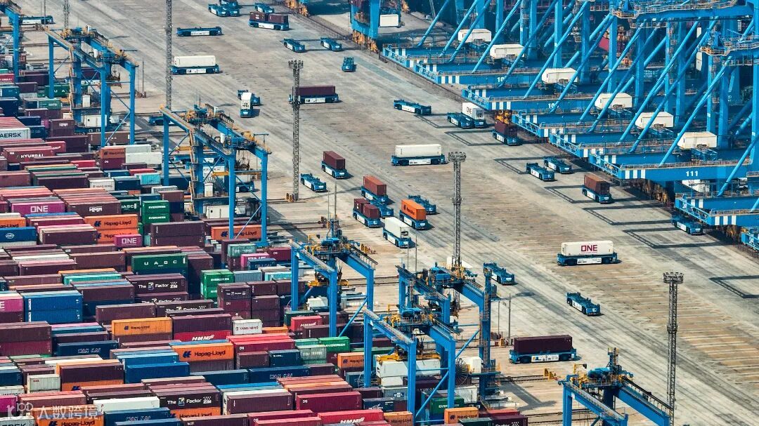 这里正在进行“达飞巴塔哥尼亚”轮的卸船作业,我们可以看到,百米大船首尾相接,来自全国腹地的货物经由装卸作业登船,发往世界各地。