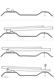 在这种解决方案中,座椅导轨在前部插到夹紧套或夹紧钩上,在后部降低以贡献防下潜角度。然后使用两个螺钉固定导轨后端。通过拧紧,使导轨在前部与夹紧套之间产生张力。以实现无间隙的连接。