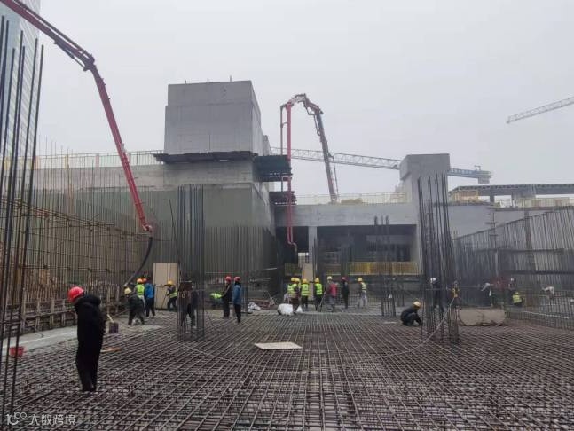 下沉广场筏板浇筑突击队