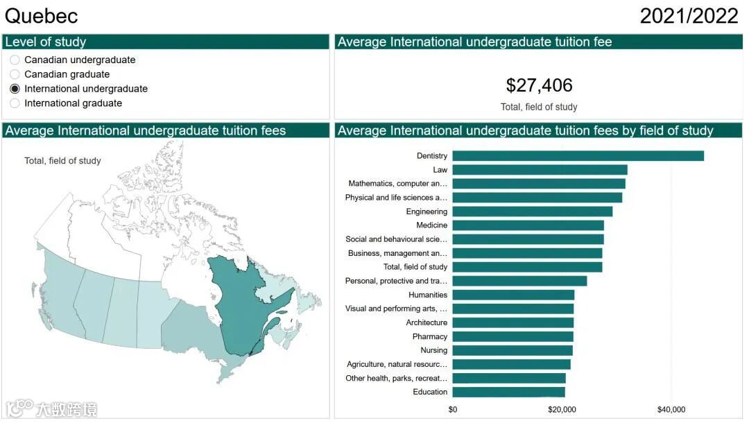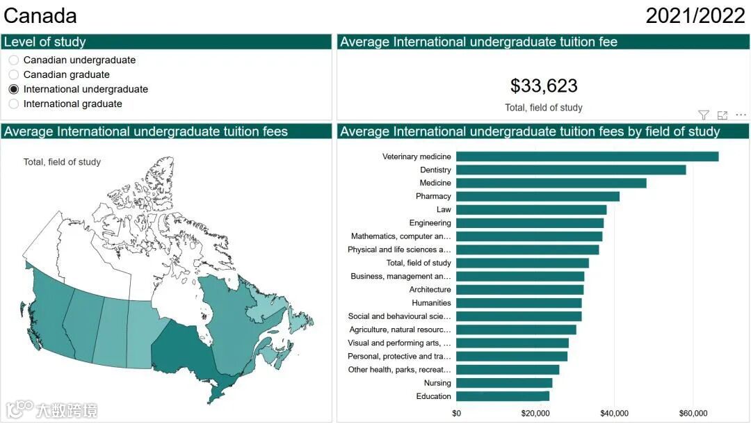 总体来说,加拿大本科生的平均学费为33,623加元/学年;研究生的平均学费为20,120加元/学年。
