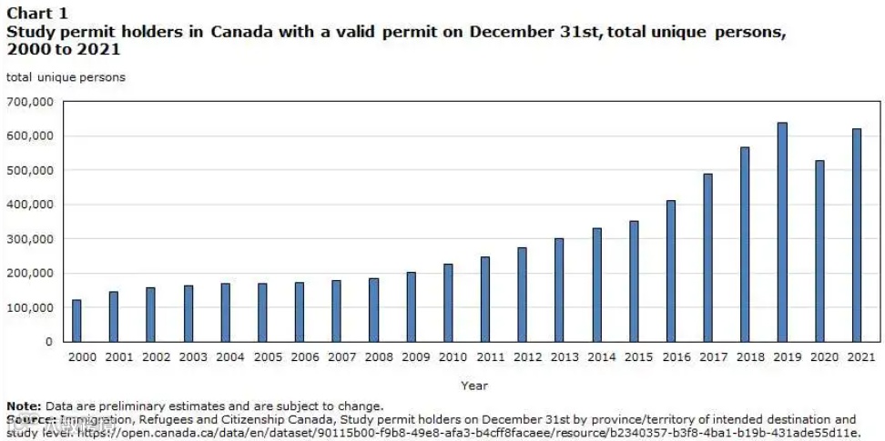 加拿大自2015年起开始实行了新的移民政策,将留学生作为移民的主要目标群体之一。此后,加拿大留学生的数量不断增加。