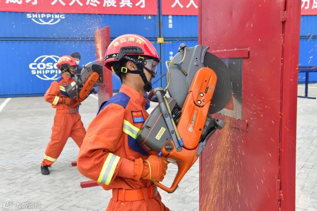 救援人员手持无齿锯切割灯泡上方钢丝、破拆防护门,快速精准!不仅如此,他们的反应力、协调力也超赞,能采用倒立、飞跃两种方式翻越障碍板,还能三步通过独木桥,快速攀爬至6m立杆顶部,太神奇了!