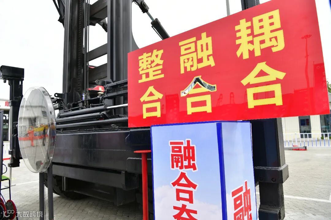 司机驾驶叉车,利用铲刀上的小型启瓶器,将展台左侧集装箱上的啤酒瓶盖快速打开,瓶口完好无损!再利用另一侧铲刀上的钢叉,挑起展演平台最右侧的鸡蛋,将鸡蛋放置于左侧啤酒瓶口上,就一个字:稳!