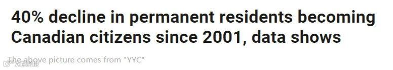 有数据显示过去20年里加拿大人永久居民选择入籍的人数大幅下降!幅度超40%。这也是入籍程序改革的重大原因之一。
