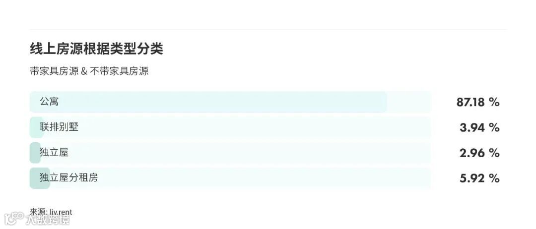 加拿大智能租房平台www.liv.rent上各类出租房型占比详情: