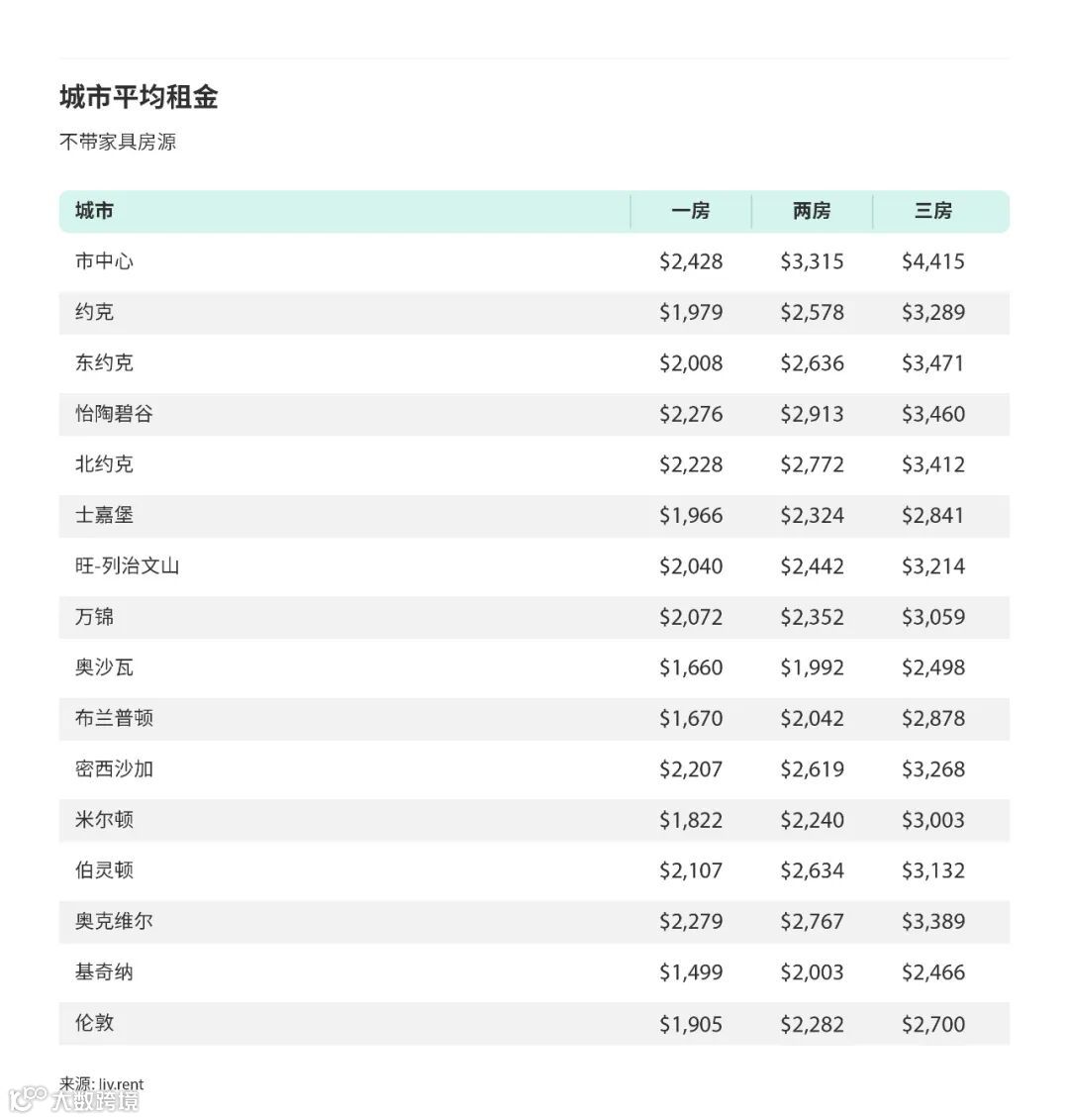 2023年2月加拿大房租排行榜出炉。2月整个大多伦多地区一卧室带家具房源平均租金为$2479月;一卧室不带家具房源平均租金为$2148/月, 环比上涨近$100/月。