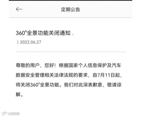 近期,起亚汽车发布了《360° 全景功能关闭通知》公告,起亚汽车表示,“根据国家个人信息保护及汽车 数据安全管理相关法律法规的要求,自 7 月 11 日起,将关闭 360° 全景功能。我们对此深表歉意 ,敬请谅解。”2021 年 10 月 1 日起,我国开始实施《汽车数据安全管理若干规定(试行)》(以下简称《规定》)。按照《规定》相关条例,要求“默认不收集原则,除非驾驶人自主设定,每次驾驶时默认设定为不收集状态”“因保证行车安全需要,无法征得个人同意采集到车外个人信息且向车外提供的,应当进行匿名化处理,包括删除含有能够识别自然人的画面,或者对画面中的人脸信息等进行局部轮廓化处理等”。