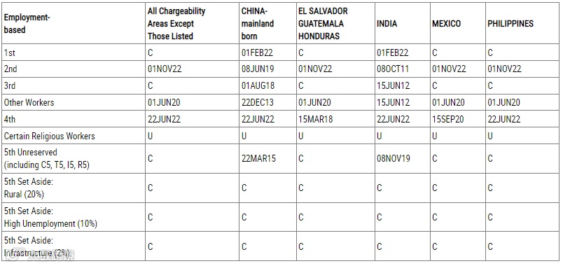 今天,美国国务院签证办公室发布2023年1月签证公告牌。