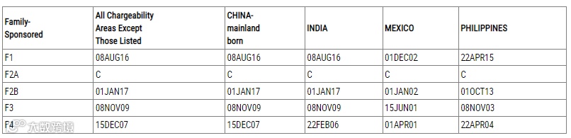 根据亲属移民排期表A,对于中国大陆出生的申请人来说: