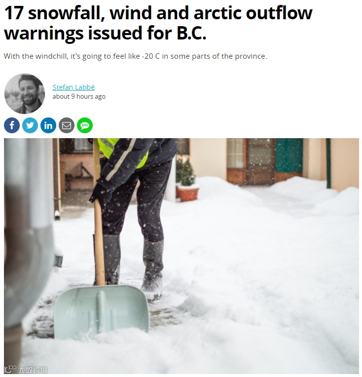 此外,加拿大环境部还发布了关于BC省17个地区的降雪警告,这场大降温可真是猝不及防!